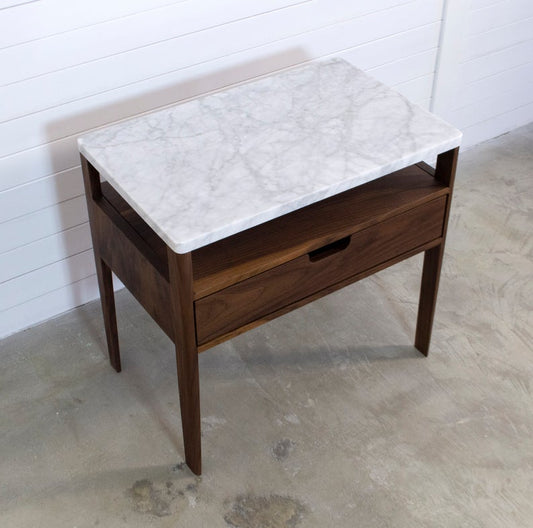 Nightstand in Solid Oak or Walnut Wood and Smoked Glass Top